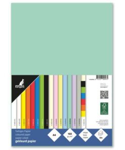 Kangaro gekleurd, houtvrij en chloorvrij gebleekt papier. Leverbaar in verschillende kleuren. Pak à 50 vel, formaat A4. 160 grams. Kleur pastel groen. FSC…