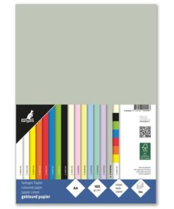 Kangaro gekleurd, houtvrij en chloorvrij gebleekt papier. Leverbaar in verschillende kleuren. Pak à 50 vel, formaat A4. 160 grams. Kleur pastel grijs. FSC…