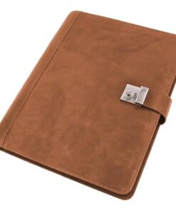 Schrijf/documentenmap Alassio A4. 4 ringsmechaniek Leer cognac. Met slot