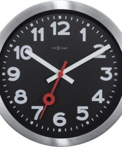 Wandklok NeXtime ‘Station’ Ø19 cm, geborsteld aluminium zwart