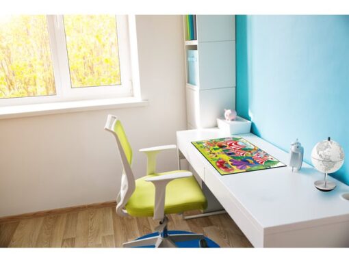 Soepele Kangaro PP bureau-onderlegger met fraai dessin. Formaat 38x58cm. Linker- en rechterzijkant voorzien van insteekvak. Dessin Circus. Met anti-slip achterkant. 100% recyclebaar.
