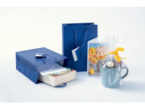 Mooie Cadeautas gemaakt van extra zwaar papier. De tas heeft een matte afwerking en is ultramarijn blauw, met cadeaukaartje. 157 grams papier. 170x230x90 mm