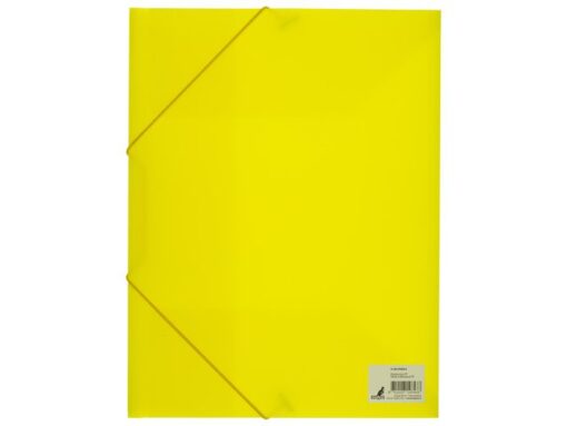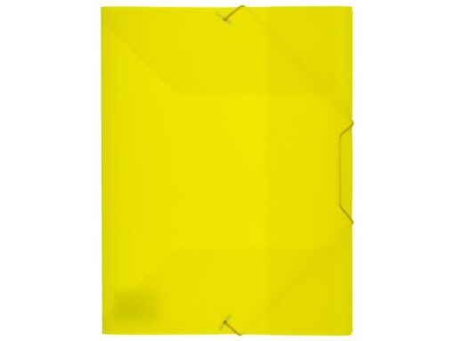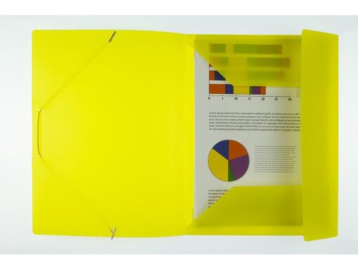 Elastomap Kangaro A4, gemaakt van 0.4 mm dik polypropyleen, in volle kleur geel, met hoekelastieksluiting. Met 3 kleppen aan de binnenzijde zodat papieren er niet uit kunnen vallen. Uitgevouwen met een capaciteit van 15mm. Afmeting: 245x320mm