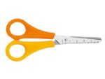 Kinderschaar, 13cm. Met ronde punt. Geschikt vanaf 4 jaar. Voorzien van 5 cm schaalindeling. Garantie: 3 jaar. Geleverd op blisterkaart met europonsing. Kleur geel/oranje, linkshandig.