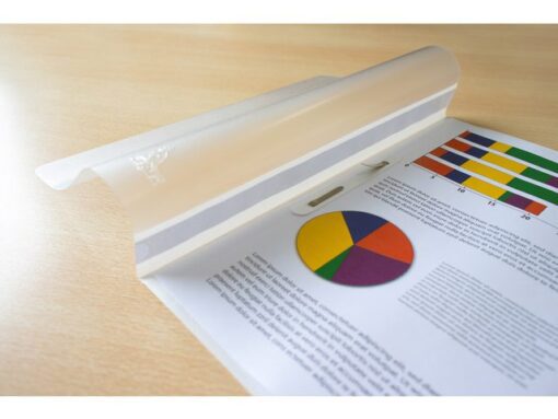 Lichte uitvoering snelhechtermap van PP. Voorzijde in helder transparant PP met een witte indicatiestrook over de volle hoogte. Achterplat en rug in gekleurde folie. Verpakt per 25 stuks in krimp. Formaat A4. Kleur grjis.