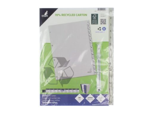 Kangaro KTC Tabblad ECO Kangaro A4 cijfers 180 grams grijs karton 4-gaats 15-delig