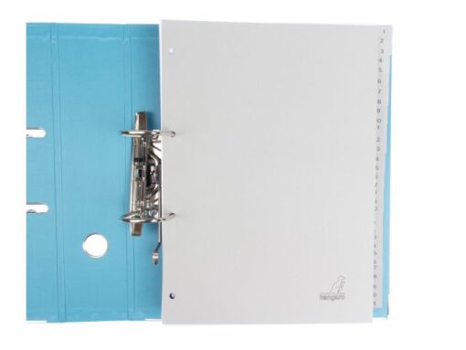 Primeur: Kangaro tabbladen van gerecycled karton FSC, voorzien van milieukeurmerk Blauwe Engel. De 31-delige tabbladen set is uitgevoerd in 180 grams grijs, duurzaam en milieuvriendelijk karton en eenzijdig aan de voorzijde genummerd. De tabbladen zijn voorzien van 4-gaats perforatie waardoor ze geschikt zijn voor zowel 2- als 4-rings ringbanden en ordners. Het keurmerk Blauwe Engel garandeert een verantwoorde en duurzame bijdrage aan het milieu.