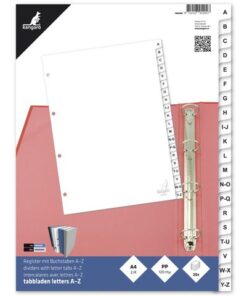 Kangaro tabbladen van een mooie kwaliteit wit karton 190 grams. De witte afgeronde tabs zijn tweezijdig zwart bedrukt met letters. De tabs en de ponsgaten zijn met glashelder kunststof (mylar) versterkt. Per set verpakt in een krimp. – met jaarindeling jan – dec R = Reverse dec – jan. A4.