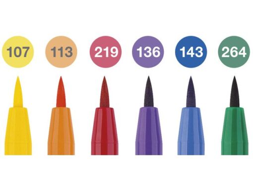 Inkttekeningen hebben een zeer lange artistieke traditie. Het is altijd een interessant medium geweest voor kunstenaars en grafici, het geeft tekeningen expressie en duurzaamheid en kan ook worden gecombineerd met vele andere tekentechnieken. Faber-Castell heeft alle voordelen van tekeninkt gecombineerd met de voordelen van een moderne, gemakkelijk te gebruiken pen – de Pitt Artist Pen. De gepigmenteerde en zeer lichtechte tekeninkt is ideaal voor schetsen, tekeningen, lay-outs, modeontwerp en illustratie. Deze pigment tekenstift is ook watervast, dus permanent en drukt niet door het papier. Reukloos, zuurvrij, pH neutraal. 6 tekenstiften in een etui met puntdikte B (penseelpunt). Kleurnummers: 107, 113, 136, 264, 143, 219.